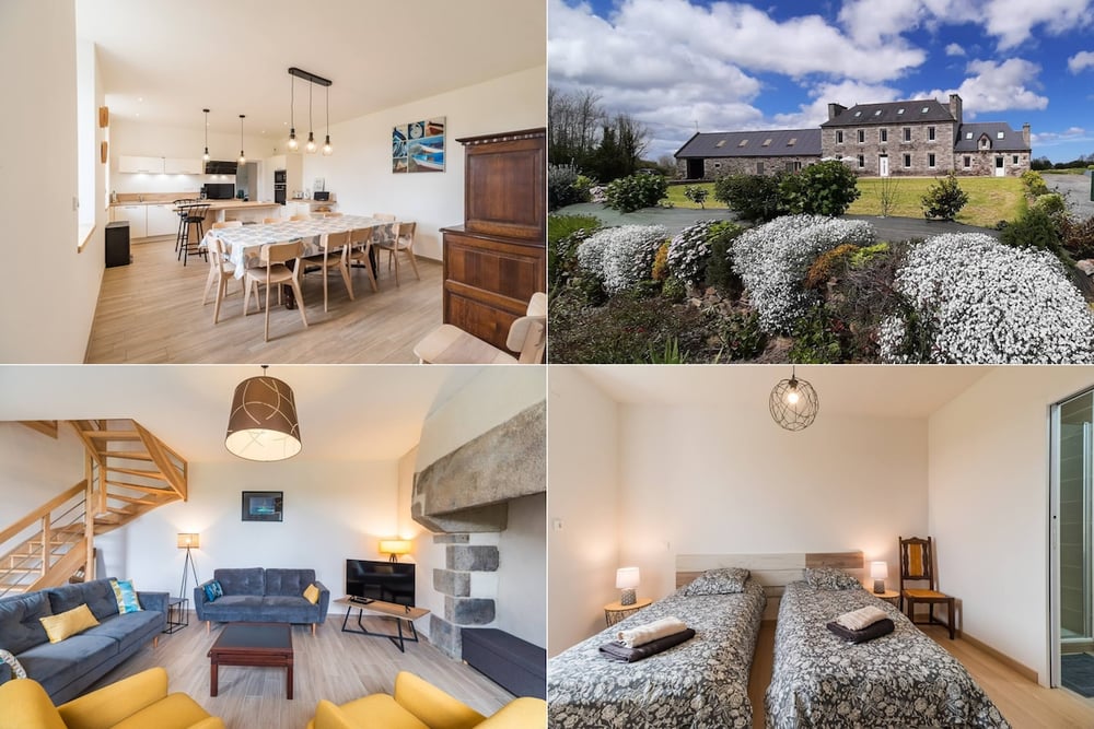 La maison a été entièrement rénovée en 2023 pour offrir confort et modernité à ses hôtes. 🔹 Rez-de-chaussée * Grande pièce de vie lumineuse avec salon, canapés, fauteuils et poufs * Cuisine moderne toute équipée : plaques, four, micro-ondes, lave-vaisselle, cafetière, etc. * Salle à manger conviviale * Buanderie avec lave-linge et congélateur * WC indépendant 🔹 1er étage * 3 chambres avec chacune leur salle d’eau privative (douche, vasque, rangements) * WC séparés 🔹 2e étage * 1 chambre dortoir avec 4 lits simples, idéale pour les enfants ou amis * 1 salle de bain avec baignoire * WC séparés 🍼 Équipements bébé disponibles sur demande, sans supplément : lit parapluie et chaise haute. 🌞 Extérieur * Table de jardin, transats et barbecue pour vos repas au grand air * Accès facile et stationnement gratuit à proximité 👉 Besoin d’une chambre supplémentaire ou d’un logement complémentaire ? Le gîte mitoyen est également disponible à la location : airbnb.fr/h/gitelezvoenizellanbian ⭐️ un avis sur le logement ? voici un lien vers l'annonce avec l'ancienne agence immobilière https://www.airbnb.fr/hosting/listings/editor/848388058750799169/details/photo-tour 🌿 À découvrir aux alentours * Les réserves naturelles et le célèbre Sillon de Talbert * Les 7 Îles, paradis des oiseaux marins 🐦 * Les jardins remarquables du Château de la Roche Jagu et de Kerdalo * Les sentiers côtiers du GR34, à quelques minutes en voiture 🚶♀️